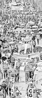 s miles participaron en la movilización por el día del Trabajo en la CdmX. señalaron que si bien hay avances laborales, la lucha ahora es por reducir la jornada a 40 horas, duplicar el aguinaldo y mejorar salarios contractuales. en varios estados hubo marchas. Foto Luis Castillo. j. laureles, c. arellano y corresponsales / P 5 y 28