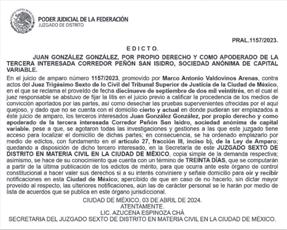 C.P. 03310 CONTACTOS: edictos@jornada.com.mx cmacias@jornada.com.mx eemartinezh@jornada.com.mx COTIZACIONES: 55 9183 0300 / EXT. 4192, 4184 Y 4157 55 4145 6888 | 55 2919 4945 TARIFA MÁS COMPETITIVA COBERTURA NACIONAL EDICTOS PRECIO +IVA $630.00 Ciudad de México 11 de enero de 2024 Al C. OSCAR ARMANDO TZONI AYALA, vecino de esta ciudad, se le requiere para presentarse a la brevedad, en las instalaciones de la SOCIEDAD MUTUALISTA “EL SEGURO DEL MAESTRO” ubicado en Justo Sierra número 55 Colonia Centro, C.P. 06020, Alcaldía Cuauhtémoc, CDMX, número de teléfono 55 55224229de Póliza de Vida del expediente TEST 79199, con el respectivo documento que acredite su identidad. CUANTÍA MENOR ORALES FAMILIARES EDOMEX JUZGADO ESPECIALIZADO EN ORALIDAD MERCANTIL, CON SEDE EN ARMERÍA, COLIMA. EXPEDIENTE NO. 23-0013-121M EDICTO. AXE CAPITAL FX INVESTMENT CENTER S.A.P.I. DE C.V.