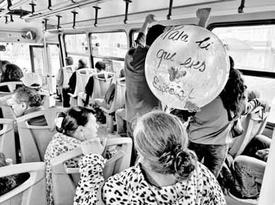 ▲ Regreso a casa, tras el festejo, en transporte público. Foto Roberto García Ortiz