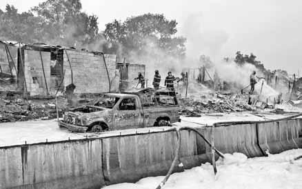 t La conflagración ocurrió en avenida 602 y Ferrocarril, con saldo de 48 personas desalojadas y 11 viviendas dañadas. Autoridades señalaron que el siniestro se debió al derrame de combustible de una pipa, pero colonos afirmaron que fue por huachicoleo Foto A. Domínguez. reDacción / P 27