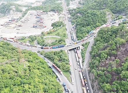 ▲ Las largas filas de tráileres y automovilistas en la autopista a Colima, muchos de ellos turistas por el periodo vacacional en curso, alcanzaron al menos 40 kilómetros. El embotellamiento comenzó