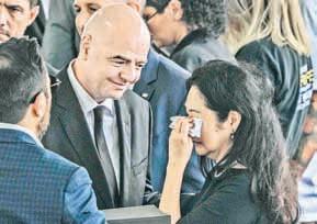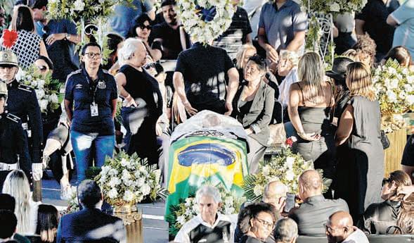 JOSÉ OLIVARES / II / P 2 Y 3 ▲ Miles de dolientes, niños, jóvenes y adultos, con playeras de la selección y del Santos, rindieron tributo ayer a Edson Arantes do Nascimento, Pelé, en el sitio donde forjó gran parte de su leyenda: el estadio Vila Belmiro, del club albinegro. Estaban presentes Marcia Cibele Aoki, tercera esposa de O Rei, y al menos tres de los seis hijos vivos del inolvidable 10, así como algunos ex internacionales brasileños, como Paulo Roberto Falcao, Zé Roberto y Mauro Silva, además del titular de la FIFA, Gianni Infantino. Se prevé que el presidente Luiz Inácio Lula da Silva asista a la ceremonia privada en un panteón este martes. Foto Ap REDACCIÓN / DEPORTES E. OLIVARES Y A. ENCISO, REPORTEROS; J. ESTRADA Y R. VILLALPANDO, CORRESPONSALES / P 21 C. J. POLYCHRONIOU / P 10 ● No pidieron reubicar a El Neto: gobierno federal ● Busca destruir la economía y la voluntad de resistir Penal de Ciudad Juárez, a cargo de autoridades de Chihuahua Se evadieron 30 reos Devastación extrema Chomsky: Rusia transitó al estilo de guerra de EU y Gran Bretaña DANIEL LÓPEZ E ISRAEL CAMPOS / CULTURA ● Da al INAH sólo 0.21 por ciento de su ganancia anual El permiso data de 1994 Ínfima paga de Xcaret por manejar zona arqueológica MARTES 3 DE ENERO DE 2023 DIRECTORA GENERAL: CARMEN LIRA SAADE // DIRECTOR FUNDADOR: CARLOS PAYÁN VELVER www.jornada.com.mx Aficionados de todas las edades despiden a Pelé