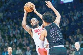 Kevin Durant encabezó la ofensiva de Brooklyn con 25 tantos en la victoria sobre San Antonio. Foto Ap