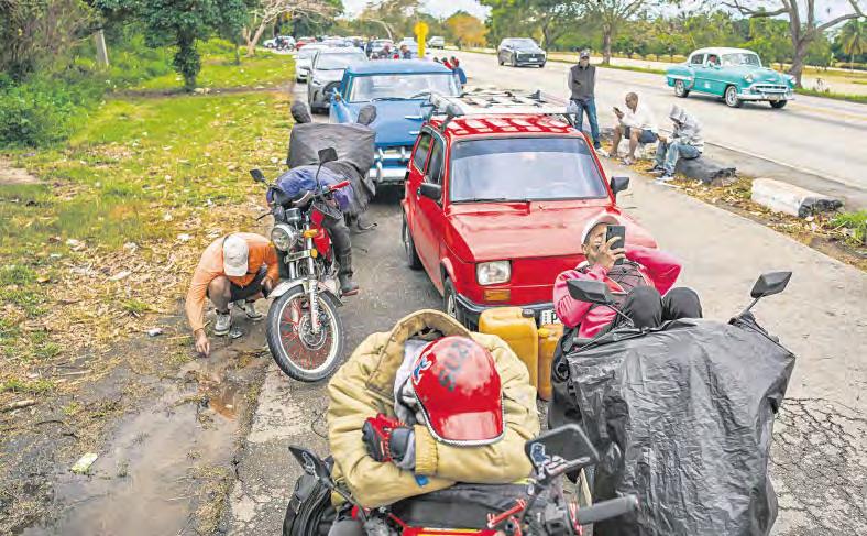 ▲ En Bacuranao se formó una larga fila para acceder a una gasolinera. Foto Ap