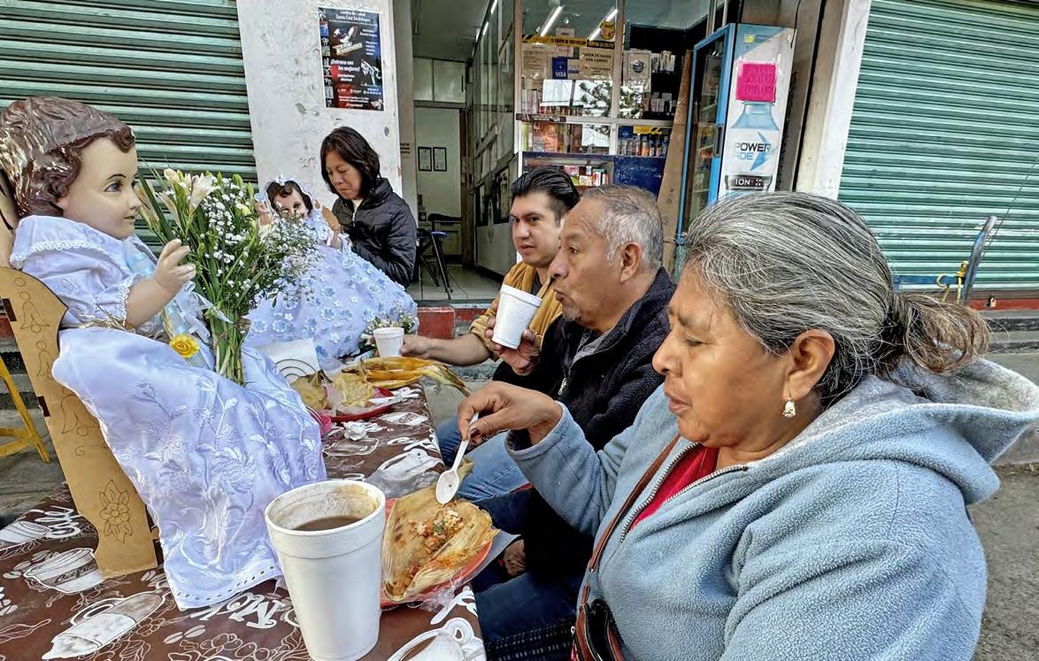 El consumo de tamales por el Día de la Candelaria no sólo representa una tradición que significa el fin de los festejos navideños, sino que para varias personas es el único alimento en 24 horas al que tienen acceso, ya sea por la falta de recursos económicos o bien porque no pueden alejarse de algún nosocomio, como familiares que esperan información de sus pacientes en el Hospital General, el Infantil de México y el Centro Médico Siglo XXI. En las inmediaciones de los hospitales los precios de los tamales de hoja de maíz –verde, dulce, mole y rajas– van de 20, 22 y 25 pesos, que para algunos aún es accesible al bolsillo en comparación con los que se expenden en sitios que se ubican en zonas gentrificadas, como la colonia Roma, donde el costo alcanza 60 pesos y 50 el vaso de atole. Afuera del Hospital General de