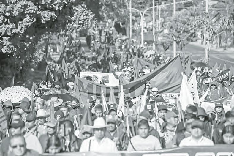 t Cientos de integrantes del Movimiento Unificador de Lucha Triqui marcharon ayer en Oaxaca para demandar justicia por los 21 compañeros que han matado durante la administración del gobernador Salomón Jara. Acusan que pese a la llegada de la 4T, la violencia sigue cobrando vidas. Foto