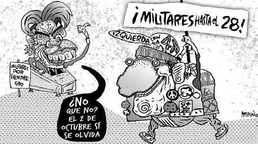En el templete, luego de guardar un minuto de silencio por los líderes que han fallecido en estos 54 años de lucha, el Comité 68 defendió su rechazo a “la militarización” del país. “No le hacemos el juego a la derecha ni a nadie, somos conscientes en insistir en que el Ejército ha cometido de manera reiterada y sistemática graves violaciones a los derechos humanos”.