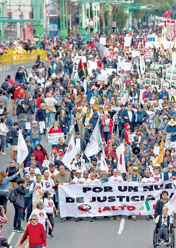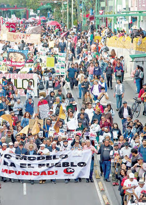 Al frente del contingente, sobrevivientes portaron una gran manta con la leyenda: “alto a la impunidad”, y un nuevo modelo de justicia para el pueblo. Tras poco más de una hora, la movilización llegó al Zócalo donde se llevó a cabo el mitin central. Frente a Palacio Nacional, Félix Hernández Gamundi reconoció que en el decreto presidencial se establezca el compromiso del Estado a la no repetición y a abrir el espacio “y los caminos para la acción de la justicia. Es lo que venimos demandando desde hace más de 50 años”.