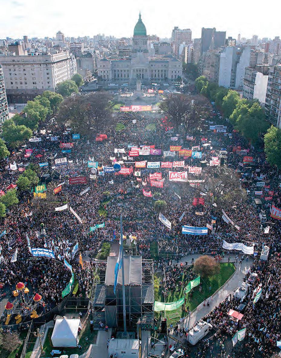 ▲ Miles de personas colmaron ayer la Plaza del Congreso de Buenos Aires, Argentina, en defensa de la educación pública ante la intención del presidente