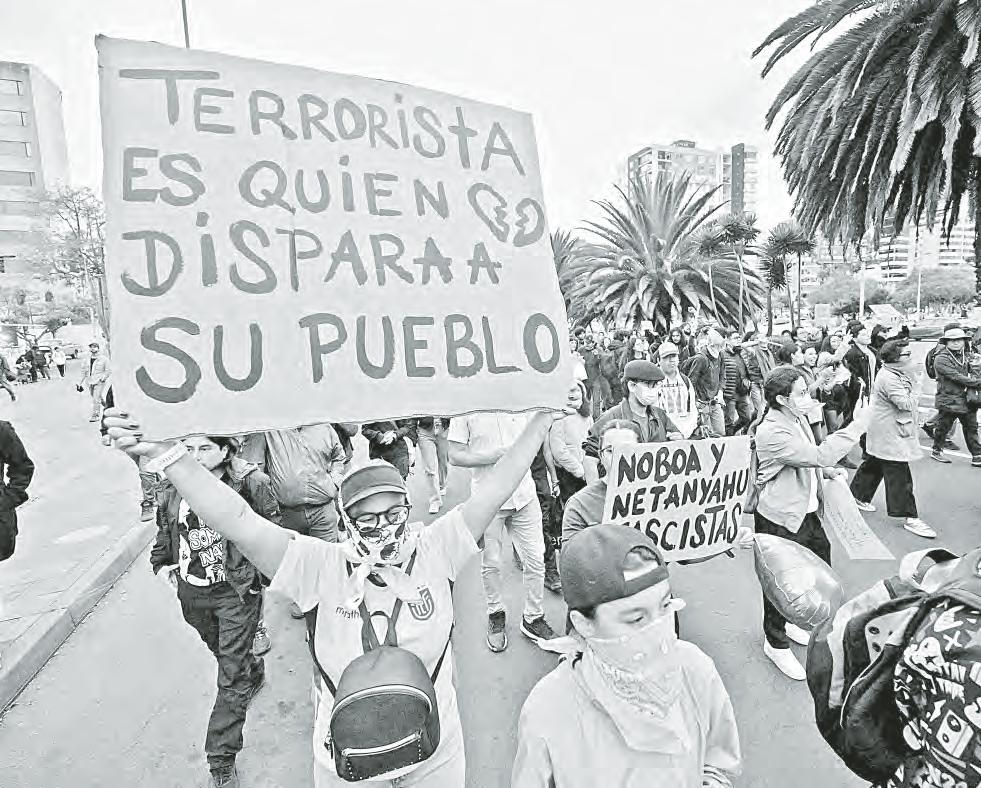 tá confrontando como si fuesen narcotraficantes y los acusa de “terrorismo”. La lucha de la Conaie ha sido tenaz; recordamos las grandes movilizaciones de 2019 y 2022 que incluyeron la toma de la capital. A pesar de la represión, “la lucha sigue, el paro no se detiene”, clama la Conaie, que demanda la eliminación del decreto 126, la libertad de los detenidos por el gobierno, el esclarecimiento de los crímenes, salud, educación y se opone a las gestiones del presidente Daniel Noboa, que en estos momentos críticos ofrece abrir bases estadunidenses en el territorio. ¡Toda nuestra solidaridad! Pablo Moctezuma Barragán