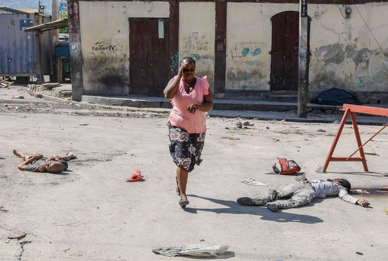 nacional. en otro vecindario había cuerpos ensangrentados boca abajo, con las manos atadas. el gobierno declaró el estado de urgencia y toque de queda por 72 horas. el primer ministro, ariel Henry, está en el extranjero en busca de apoyo de la onu. Foto ap. agencias / P 22