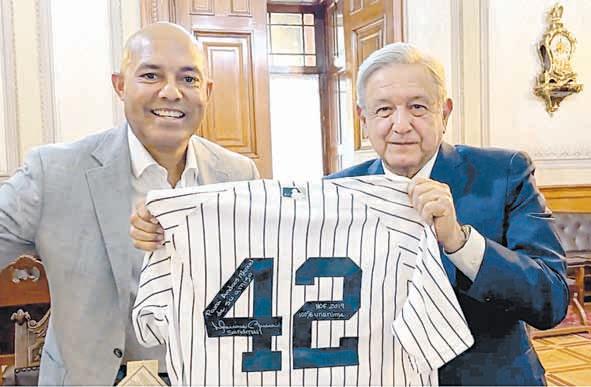 ▲ En ambiente amigable, el Presidente recibió en Palacio Nacional al legendario pitcher panameño de los Yanquis de Nueva York, con quien conversó sobre su famoso lanzamiento que lo llevó al Salón de la Fama en 2019 como el mejor cerrador de todos los