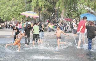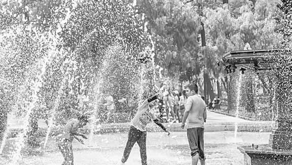 Familias aprovecharon fuentes en el Centro Histórico, como las de la Alameda, para mitigar el agobiante calor. Autoridades activaron la alerta en varias alcaldías y llamaron a la población a evitar exponerse a la luz solar por tiempos prolongados. Foto Roberto García Ortiz 7502228390008