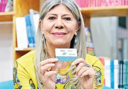 ▲ Rocío Mejía Flores, directora de la Financiera para el Bienestar, muestra la tarjeta mediante la cual migrantes podrán transferir, a bajo costo y con