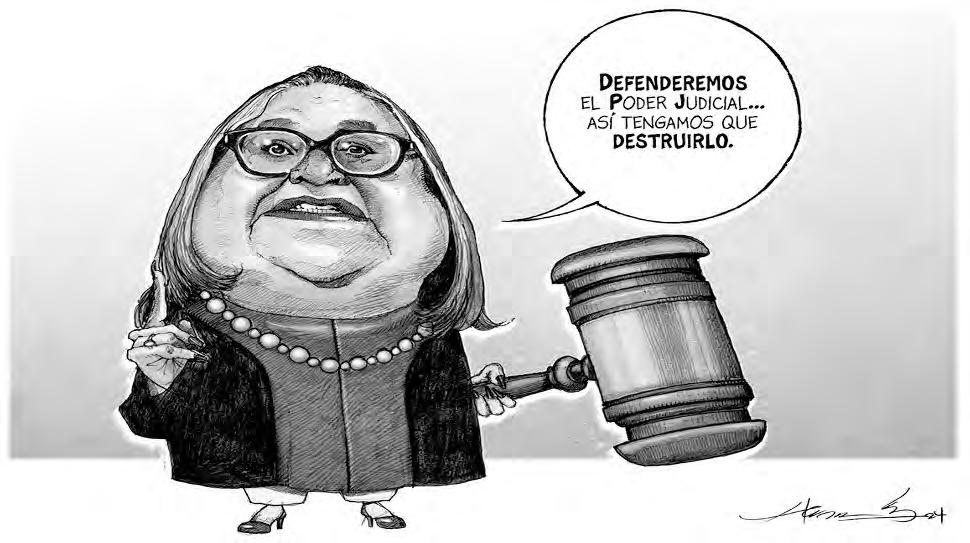 ra, etcétera, y quieren que la mayoría haga lo que desea la minoría que perdió las elecciones. Pero la otra parte la presenta como la solución a la gran corrupción que se vive en el Poder Judicial. Es indiscutible la necesidad de terminar con esos males, con el nepotismo, con los privilegios y la vida de primer mundo de que gozan los de arriba, pero es necesario que desde el gobierno se tome en cuenta que entre los que se oponen hay intereses legítimos e ilegítimos, que no son igual las grandes calificadoras, los bancos, las organizaciones empresariales –a quienes por cierto les ha ido muy bien con la llamada 4T– que los trabajadores que por años han ido ganando experiencia para desempeñar un trabajo muy especializado como es el de la impartición de justicia.