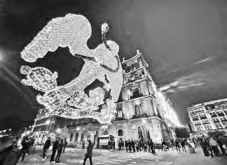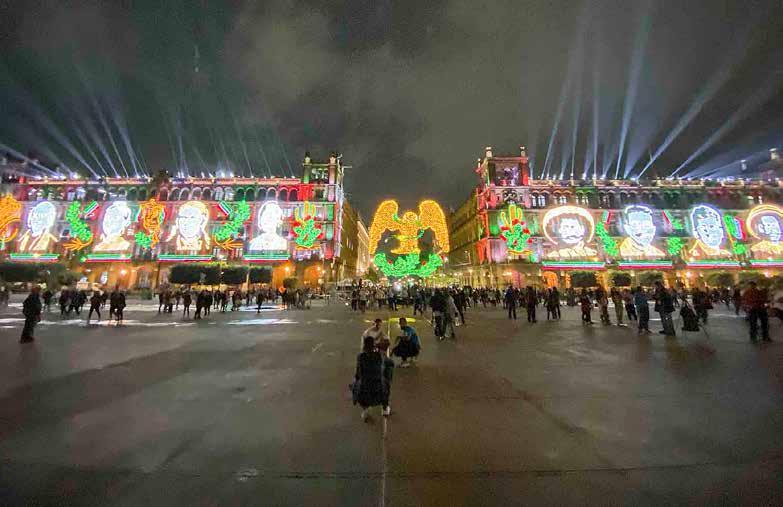 s Autoridades del gobierno capitalino encendieron anoche el alumbrado decorativo por el 214 aniversario del inicio de la gesta por la independencia. en la principal plaza pública del país se colocaron en total 12 mosaicos sobre bandas tricolores. la figura central es la