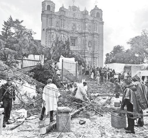 con capacidad de extraer 30 litros por segundo pero “la basura y la acumulación de residuos generan taponamientos”. Entre el agua, un grupo de trabajadores caminaba en busca de placas de autos para entregarlas a las autoridades, que ofrecen 500 pesos por recuperarlas. El socavón que se formó en un parque del camellón central de la avenida Wilfrido Massieu, casi esquina con Eje Central, entre las colonias Nueva Industrial y San Bartolo Atepehuacán, habría sido ocasionado por la fractura en el tubo del drenaje y se llevó la estructura de un techado junto una mesa para pícnic.
