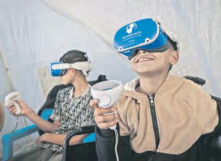 Mediante financiación colectiva, un palestino graduado en electrónica lidera una iniciativa de salud mental que se desarrolla en un campamento de refugiados de Al Zawayda, en la zona central de la franja, donde menores traumatizados por la guerra son transportados, mediante visores, desde escenas de destrucción a verdes jardines, playas tranquilas y ciudades llenas de juegos. En tanto, cinco palestinos murieron ayer en un nuevo ataque israelí en el sur del enclave. Foto Afp AGENCIAS / P 27 Y DEPORTES