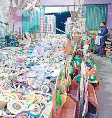 ▲ Los puestos de juguetes tradicionales de madera ofrecen variedad pero pocos son los clientes que se detienen a comprar( izquierda).