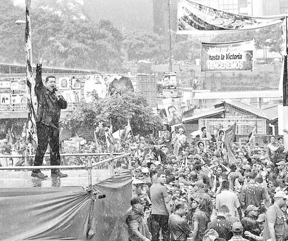 En 2002, el empuje de su pueblo logró que por primera vez en América Latina y el mundo un golpe de Estado inspirado por Estados Unidos, como se comprobó fehacientemente, fuera derrotado precisamente por ese pueblo y sectores patrióticos y constitucionalistas del ejército. La del 13 de abril de ese año fue una jornada de enorme heroísmo popular.