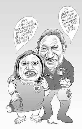 La ex jefa delegacional en Miguel Hidalgo se contradijo al proponer una actuación “con toda la fuerza y capacidad del Estado, sin ninguna concesión al crimen” y a continuación aseverar que ello no tiene nada que ver con operaciones armadas. Al repudiar la participación del Ejército en tareas de seguridad terminó diciendo que “si lo vamos a mandar, que sea con todas las facultades” –mismas que su partido ha denegado de manera sistemática–. Por otra parte, redujo el abatimiento de los índices delictivos a una cuestión de “ovarios” y “agallas”. En suma, Gálvez negó lo que ha revelado en otros momentos y lo que ostenta con sus alianzas: que busca llevar a México a una redición de la “guerra contra la delincuencia” desatada por Felipe Calderón y basada en la exaltación de la violencia de Estado, el amedrentamiento de la disidencia y la deshumanización de las personas acusadas, con o sin pruebas, de vínculos criminales. En contraste, Sheinbaum corroboró su perspectiva, basada en la continuidad de lo