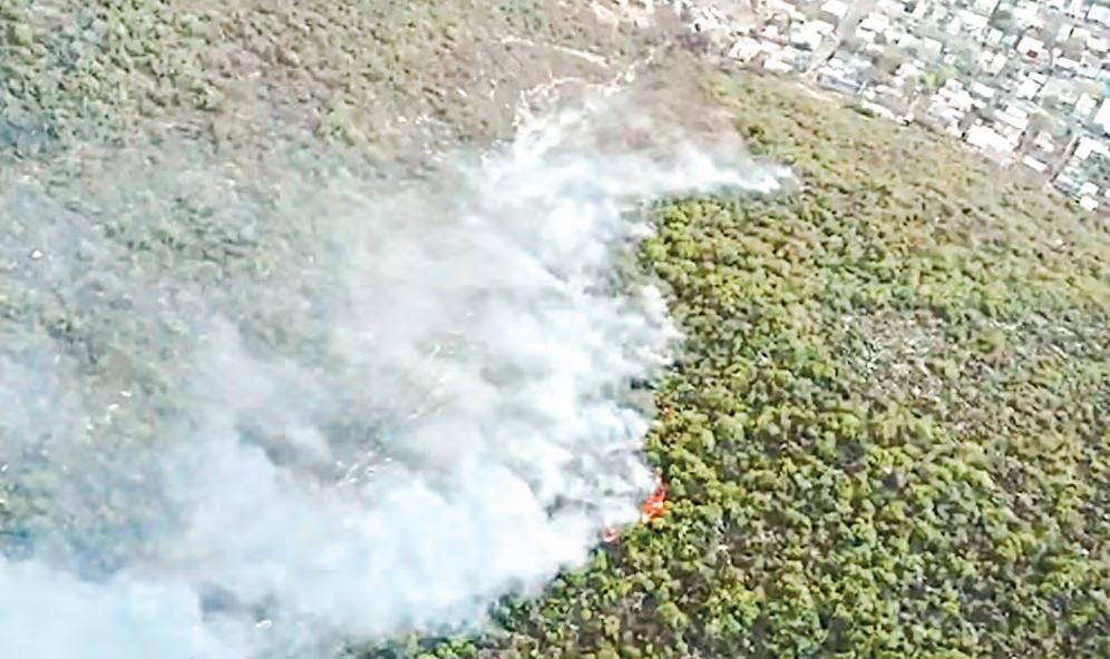 ▲ Debido a las ráfagas de viento de hasta 100 kilómetros por hora, ocasionadas por el frente frío 31, se desataron ayer 223 incendios en lotes baldíos, fábricas y pastizales de municipios de la