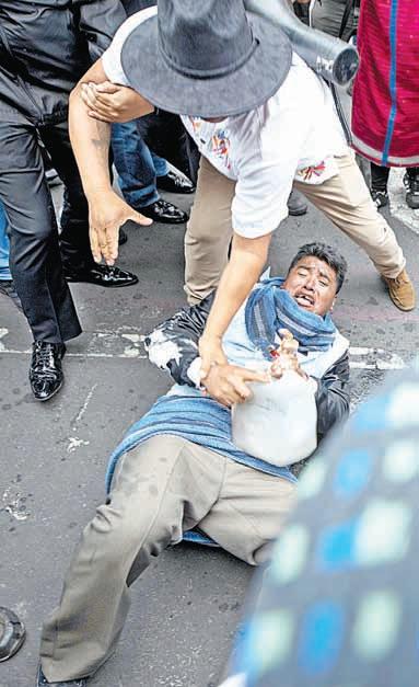 contra su integridad física. En el intento de quitarle el bidón hubo jaloneos entre los manifestantes y trabajadores, que incluso cayeron al piso.