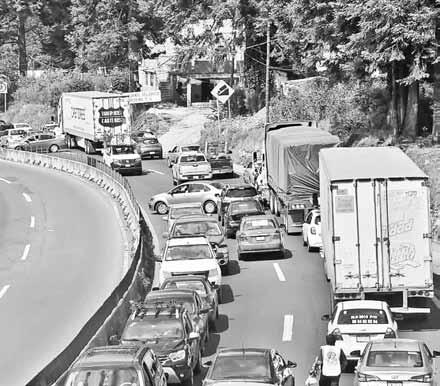 locales y federal frenar la tala en el Bosque de Agua, el cual se ubica en las dos entidades y en Morelos. El bloqueo, que duró de las nueve a casi las 15 horas, afectó a miles de personas. Foto La Jornada S. CHÁVEZ Y L. GÓMEZ / P 24