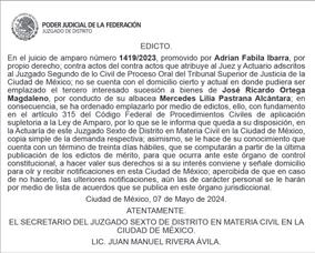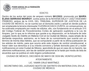 En los autos del juicio de amparo directo D.C. 193/2024, promovido por Miriam Guadalupe Muñoz Ruíz, en su carácter de albacea y heredera de la sucesión a bienes de Eduardo Cano González, contra la sentencia de dieciocho de enero de dos mil veinticuatro, dictada por la Sexta Sala Civil del Tribunal Superior de Justicia de la Ciudad de México, en el toca 2130/2018-3, al ser señalado como tercero interesado y desconocerse su domicilio actual, con fundamento en el artículo 315 del Código Federal de Procedimientos Civiles, de aplicación supletoria de la Ley de Amparo y 27, fracción III, inciso b) de la ley de la materia, se ordena su emplazamiento al juicio de mérito por edictos, los que se publicarán por tres veces de siete alguno de los periódicos diarios de mayor circulación en la República; se hace de su conocimiento que en este Tribunal Colegiado, queda a su disposición copia de la demanda de amparo y que cuentan con un término de 30 días hábiles, contado a partir del día siguiente al de la última publicación de los edictos para que ocurran ante este órgano jurisdiccional a hacer valer sus derechos. Ciudad de México, veintitrés de abril de 2024.