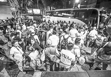 11 camiones. Muchos aceptaron el traslado, mientras otros se dispersaron con sus escasas pertenencias. Al cierre de edición, las autoridades no habían indicado el destino de los migrantes. Foto Víctor Camacho. Jessica Xantomila, Jared laureles y emir olivares / P 10