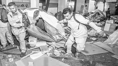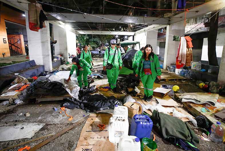 ▲ Agentes del INM, con apoyo de la Guardia Nacional y de la policía capitalina, retiraron anoche a cientos de extranjeros, la mayoría de Venezuela y Haití, quienes acampaban en la plaza ubicada en la colonia Juárez, alcaldía Cuauhtémoc; en la operación fueron usados