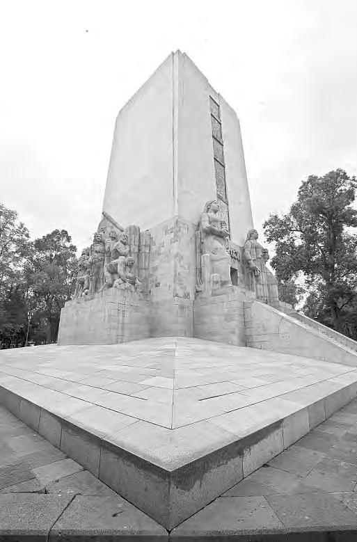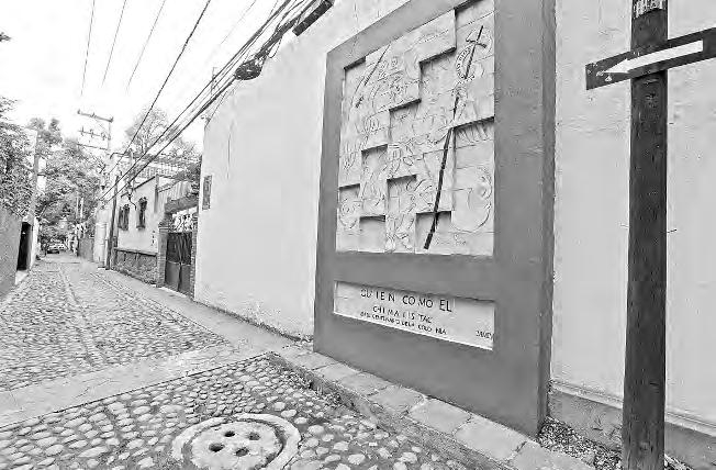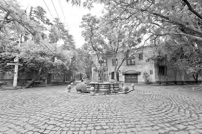▲ Funcionarios y pobladores en el monumento a Álvaro Obregón en San Ángel, en 1935, siete años después del magnicidio, y en una gráfica actual. Un hombre en la vista panorámica de lo que era el río Chimalistac, en 1919, y las calles empedradas del apacible barrio en nuestros días. Fotos Colección Archivo CasasolaFototeca Nacional del INAH. https://mediateca.inah.gob.mx/ repositorio/islandora/object/ fotografia%3A433716, Colección Incremento Acervo-Fototeca Nacional https://mediateca.inah. gob.mx/repositorio/islandora/ object/fotografia%3A9207 y Germán Canseco