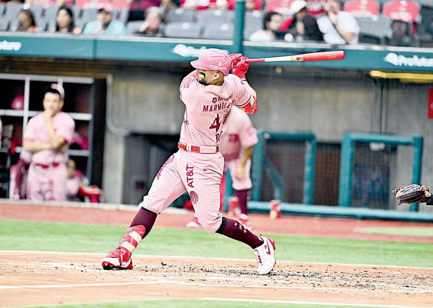 ▲ La ofensiva de Diablos Rojos del México estuvo inspirada con siete cuadrangulares para la victoria 17-10 sobre Bravos de León en el segundo juego de la serie en el estadio Alfredo Harp Helú. Río Ruiz conectó un par de vuelacercas, el resto los aportaron José Marmolejos (en la imagen), Patrick