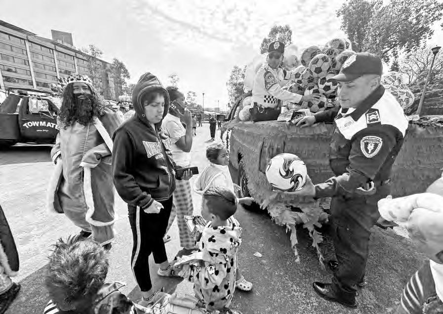 t Policías de la Secretaría de Seguridad Ciudadana hicieron de Reyes Magos y superhéroes para repartir juguetes en las calles de la ciudad y en campamentos de migrantes en la alcaldía Gustavo A. Madero. Melchor, Gaspar y Baltasar también recorrieron centros penitenciarios. Foto Alfredo Domínguez lAurA GómEz / P 25