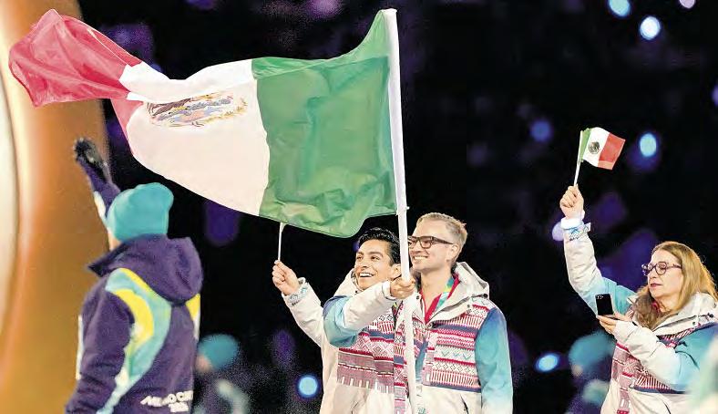 ciudad”, clamaron los manifestantes en la Plaza Leonardo da Vinci, algunos de los cuales expresaron su solidaridad con Palestina y Venezuela. El patinador Donovan Carrillo encabezó la delegación mexicana. Fotos Ap REDACCIÓN / DEPORTES