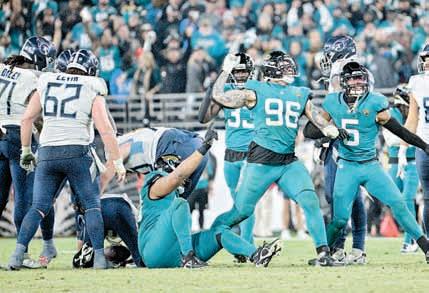 Los Jaguares de Jacksonville vencieron 20-16 a los Titanes de Tenesí y ganaron por primera vez el título Sur de la Conferencia Americana gracias a la anotación de 37 yardas de Josh Allen tras recuperar un balón perdido. El triunfo les da el boleto a la postemporada.