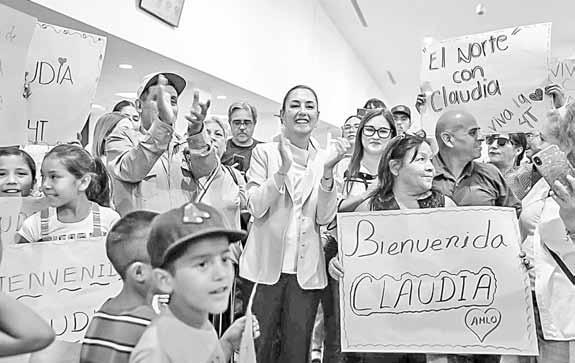 La jefa de Gobierno, Claudia Sheinbaum, viajó ayer al estado de Chihuahua para impartir una conferencia magistral, donde fue recibida con mensajes de apoyo, bailes y música polka. Foto La Jornada
