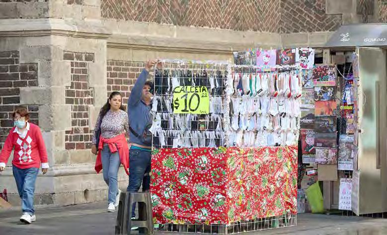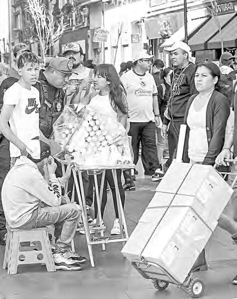 ▲ Sin restricción, los vendedores ambulantes de comida, juguetes, ropa y productos navideños ya ocuparon el corredor peatonal de Francisco I. Madero y el Zócalo. Algunos comerciantes comentaron que pagan cuota por instalarse en las calles. Transeúntes entrevistados