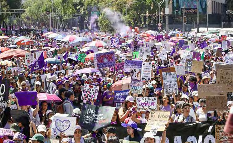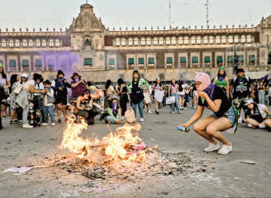 la Catedral Metropolitana y Palacio Nacional sin éxito. Como respuesta, las policías activaron sus extintores para repeler la embestida. Al concluir la marcha, cientos de mujeres permanecieron por varias horas, hasta la noche, en la plancha del Zócalo, donde prendieron fogatas alimentadas con los carteles que llevaron durante su recorrido. Allí cantaron, bailaron, se abrazaron y reconocieron que “esta lucha nos hermana”.