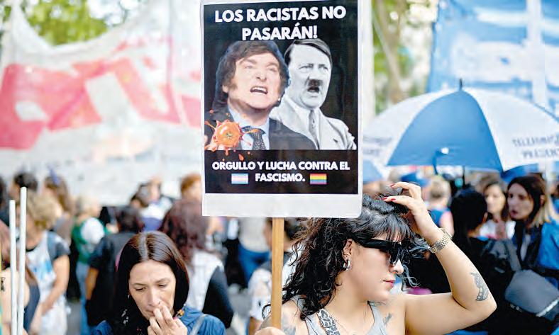 el gobierno de Javier Milei, quien ha catalogado el feminismo, la defensa del clima y las diversidades como parte de la llamada “ideología woke”. Miles de mujeres también se movilizaron en Santiago de Chile, en un contexto marcado por la reciente denuncia contra un ex integrante del gabinete, acusado de violación por una funcionaria.