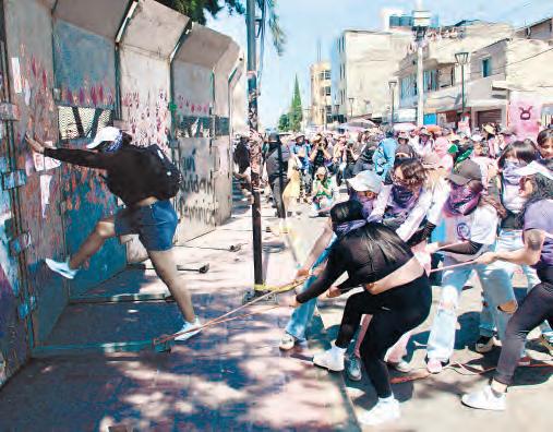 las acciones han de ir más allá del discurso; por lo contrario, será un postulado falso”. Aunque la mayor parte de la manifestación fue pacífica y sororal, como cada año estuvieron presentes integrantes del bloque negro, que provistas de martillos y pintura en aerosol golpearon insistentemente las vallas que cercaron avenidas como Juárez y Cinco de Mayo. Entre las avenidas Juárez y Balderas, las integrantes del bloque lograron perforar las tablas de madera de uno de los edificios y rompieron las puertas de cristal del inmueble. Al llegar al Zócalo insistieron en derribar las protecciones metálicas que resguardaban