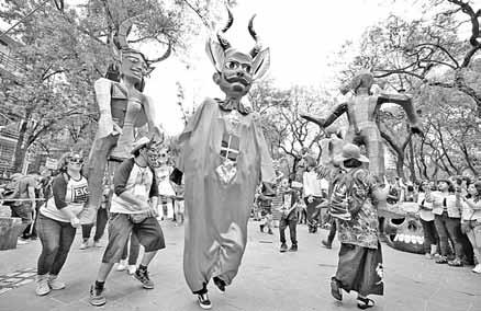 ▲ Figuras elaboradas por la Escuela Itinerante de Cartonería recorrieron la alameda. Foto Víctor Camacho