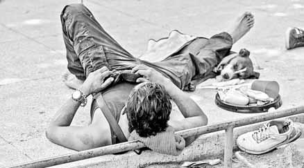 ▲ Un indigente y su fiel compañero descansan en la avenida Juárez. Foto Pablo Ramos