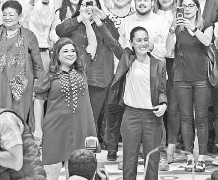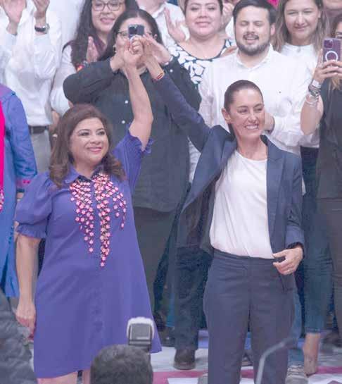 s Luego de recibir su constancia de mayoría, Clara Brugada (izquierda) se encontró con Claudia Sheinbaum en la Arena méxico para celebrar el triunfo con simpatizantes y reconocer el trabajo de brigadistas de la coalición. Antes, la