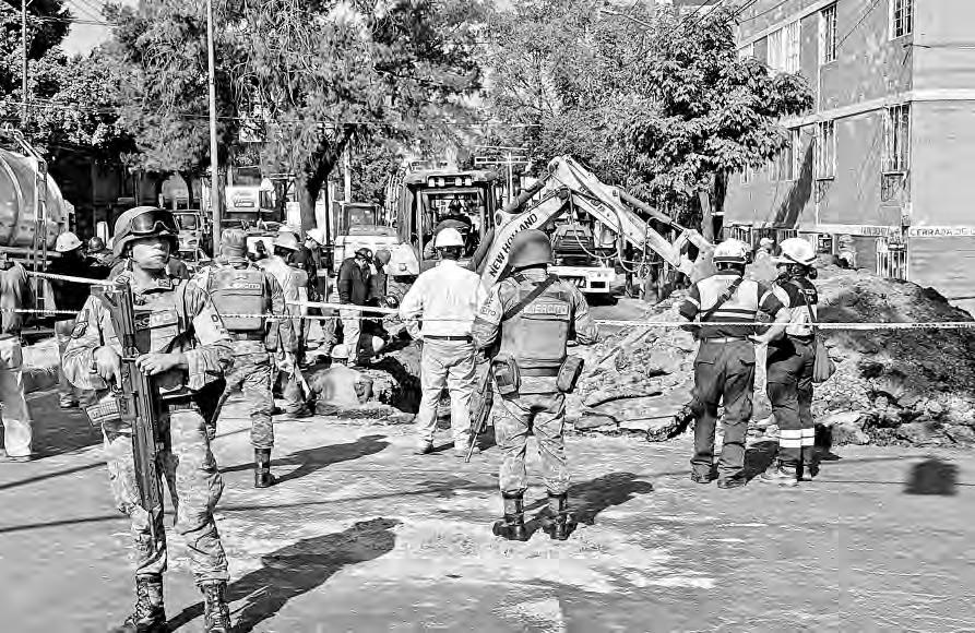 Efectivos de la Secretaría de la Defensa Nacional, de la Guardia Nacional, de Seguridad Ciudadana y de la Secretaría del Agua, así como de protección civil, resguardaron la zona, mientras con maquinaria pesada rompieron el pavimento y sacaron tierra para confirmar el hallazgo.