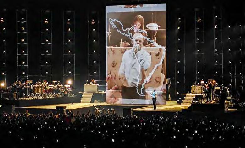 puertorriqueño, clamó por el fin de los conflictos armados en el mundo, poniendo énfasis en la guerra israelí en la franja de Gaza. También recordó sus orígenes con Calle 13 y cantó su emblemática Latinoamérica Foto e información de Ernesto Yáñez / EspEctáculos