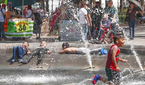 de México rebasó los 32 grados, casi dos menos que la más alta reportada en la capital, de 33.9, el 9 de mayo de 1998. Asimismo, la sequía afecta a más de 60 por ciento del territorio nacional. En la imagen, las fuentes de la Alameda Central. Foto Víctor Camacho