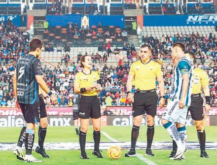 t Después de 20 años, una mujer arbitró un partido varonil del torneo mexicano. Con firmeza en sus decisiones, Katia Itzel García dirigió el encuentro donde Querétaro logró la victoria de 2-1 sobre Pachuca en el estadio Hidalgo. También se convirtió en la primera en utilizar el VAR en la liga. Foto tomada de redes REDACCIÓN / DEPORTES