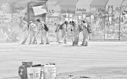 ▲ Trabajadores de limpia y mantenimiento en la Plaza de la Constitución. Foto María Luisa Severiano