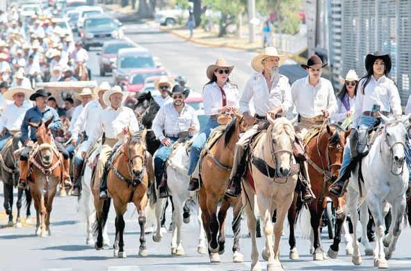 ▲ Alrededor de 100 mujeres y hombres se manifestaron en Guadalajara, montados a caballo, para exigir que se ponga alto a la violencia y se haga justicia en el asesinato de cuatro hombres en la comunidad de Huentitán. Narraron que sujetos armados los atacaron